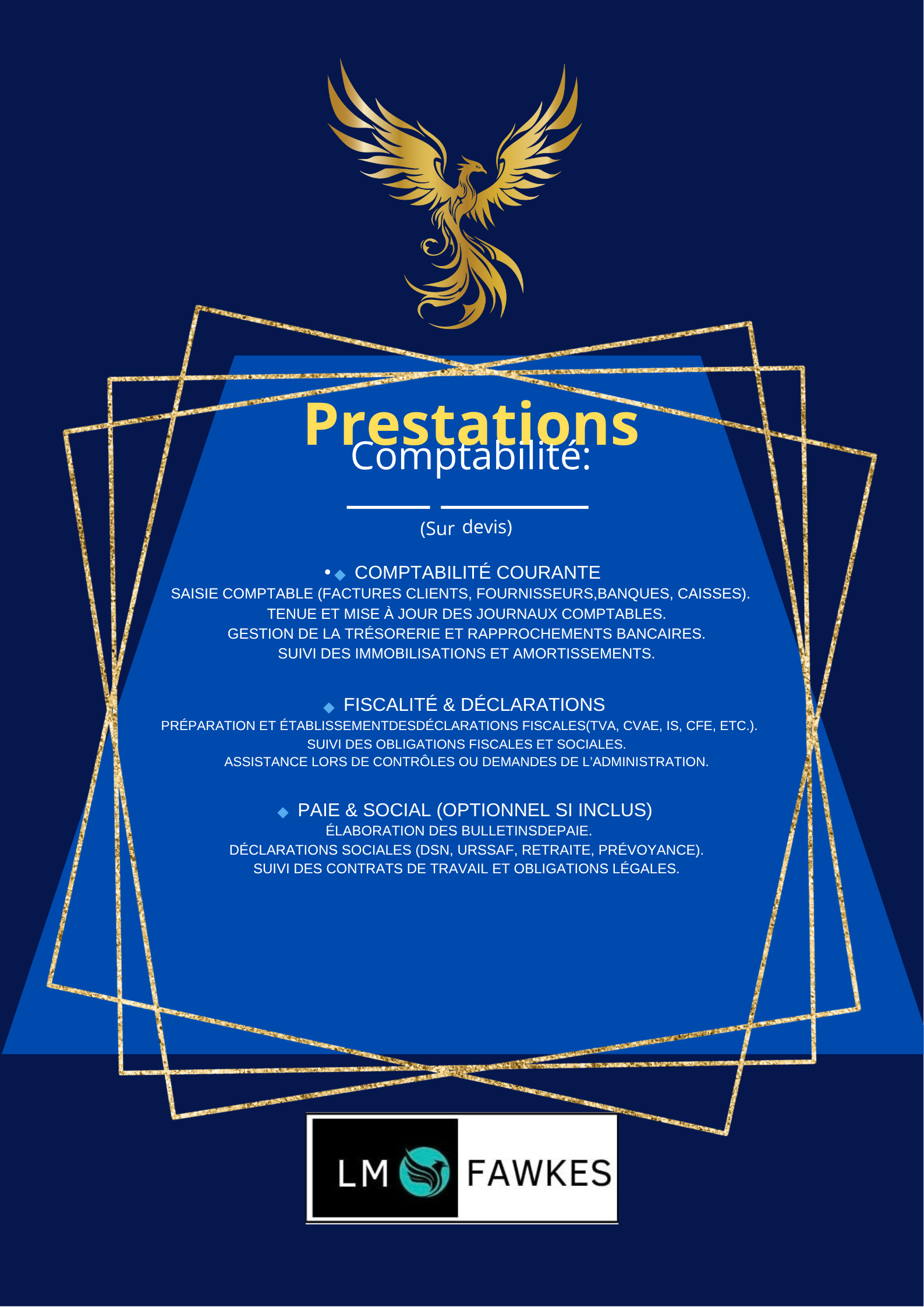 Accompagnement stratégique (création d’entreprise, optimisation des charges, etc.).
